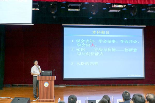 中国工程学院院士、地测学院名誉院长彭苏萍教授为新生做报告,煤炭资源与安全开采国家重点实验室的多名专业老师参加了此次专业介绍会。专业介绍会由地球物理系主任邹冠贵主持。