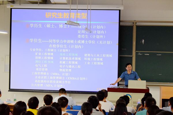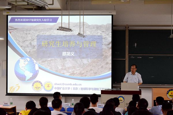 接下来,副院长邵龙义教授介绍了研究生培养和学籍管理等相关条件及规定,期望广大研究生要坚持理想,脚踏实地,打牢知识功底、积蓄前进能量,勇于探索、勇于突破,最终能够成为具有坚定理想信念、强烈创新精神、强大实践能力、精深专业素养的高素质人才。