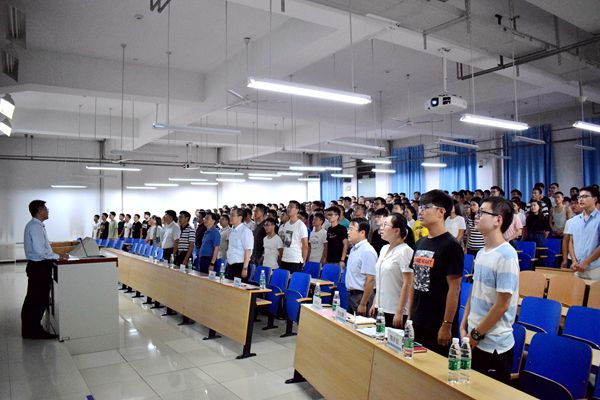大会在庄严的国歌声中拉开序幕。院长唐跃刚主要介绍了以校史为主的学校概况,我院学科水平、师资力量、发展规划等基本情况,向大家讲述了研究生培养的基本过程及教育特点,提出研究生更加强调一种自主的学习,博士生则应该具有独立的对于问题的分析与解决能力。希望同学们做好从本科生到研究生、博士生的角色转变,以良好的学习态度更多的参与到研究及社会实践中去,保有学术道德,杜绝学术剽窃,抵制诱惑,明辨是非,顺利完成学业。