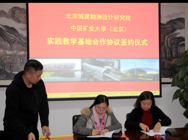 地测学院的来访,受到了城勘院副院长高文新、副院长张广伟、人力资源部部长王蘅,测量专业院院长李响、书记兼总工陈大勇、副院长耿长良等领导的热烈欢迎。洽谈签约仪式由王蘅部长主持,秉承着简约活泼的原则畅所欲言。高文新副院长在讲话中,对中国矿业大学(北京)为城勘院的快速科学发展输送优数十名秀毕业生表达了深深的谢意。地测学院一行观看了城勘院的宣传片,更加深入的了解了城勘院近几十年来立足北京、放眼全国、走向世界的飞速发展状况,并被其在国内外地铁、城市基础设施建设等方面所取得的卓越成就所震撼。经交流、洽谈,双方不仅在本科实践教学基地建设上达成一致,同时在企业导师聘任、指导实习实验和毕业设计、参观教学、新生引航工程教育、工程硕士联合指导、校企合作等方面也取得了共识,均表示将进一步加强产学研合作,以实现互惠共赢和创新发展。由李晶副院长和王蘅部长代表双方在合作协议上签字,崔希民书记与高文新副院长为实践教学基地揭牌,签约仪式在双方愉快的沟通交流和共识中圆满结束!