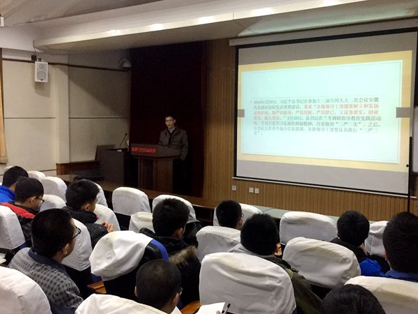 崔书记首先介绍了“三严三实”的背景和内涵,强调了它的重大意义,又列举了干部队伍中存在的一系列“不严不实”问题以及其危害。接下来崔书记运用一系列生动具体的事例,深刻阐述了严以修身的实践意义,引导同学们日常学习生活中重在“修智、修德、修行”,努力做到知行合一;又从权从何处来,用到何处,如何严格要求用等方面强调了权为民所系,要求同学们对党忠诚,勇于担当,结合自身实际下大力气践行合格共产党员要求。