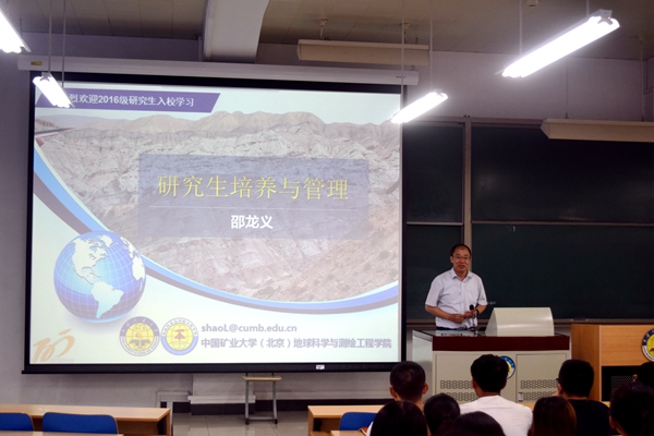 副院长邵龙义介绍了我院研究生培养及其相关规定,希望大家用青春来谱写与充实研究生生活,为实现自己的梦想注入起航的动力,同时也祝愿每一位学子都能拥有一个精彩的大学生活。
