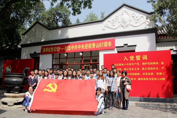 值此建党95周年来临之际,为缅怀革命先辈、铭记民族历史、激发学生爱国主义热情和增强其历史责任感,我院本科2013级党支部45名党员于5月8日前往香山双清别墅开展了主题为“追寻红色记忆,传承红色精神,争做时代先锋”的党日活动。活动主要分三个篇章进行: