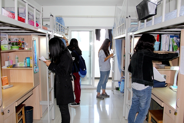为了加强学生宿舍建设工作,促进同学交流,保持军训期间培养的良好宿舍卫生习惯,2015年10月13日下午,我院举行2014级本科生“女生进男寝”活动,辅导员王尧葵和14级所有本科生参加活动。
