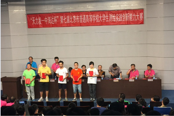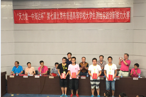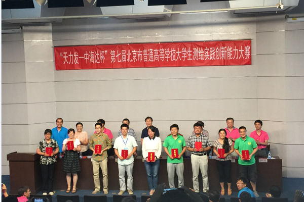 由北京测绘学会教育委员会主办、北京建筑大学承办的第七届北京普通高等学校大学生测绘实践创新能力大赛于2015年6月26日-28日在北京建筑大学大兴校区隆重举行,来自中国矿业大学(北京)、中国地质大学(北京)、华北科技学院、北京建筑大学、北京工业职业技术学院和防灾科技学院共6所院校的23支代表队参加了包括数字测图、一级导线和四等水准共3个项目的测绘工程专业比赛;来自中国矿业大学(北京)、清华大学、中国地质大学(北京)、北京交通大学、北京林业大学、北京工业大学、北京建筑大学、北方工业大学、防灾科技学院、北京工业职业技术学院的17支代表队参加了包括普通水准、图根导线和点位测设共3个项目的非测绘工程专业比赛。