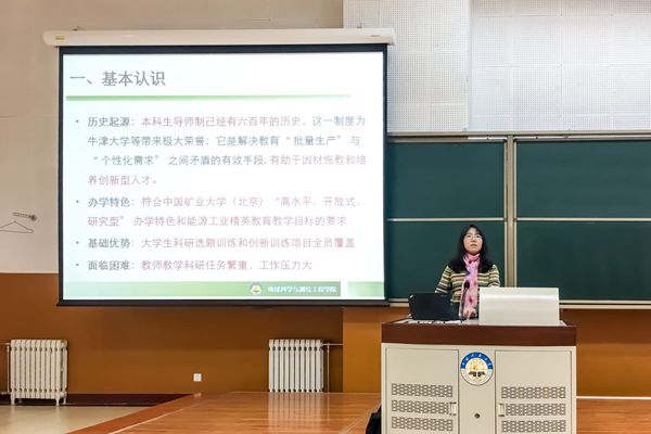 李晶院长首先介绍了本次座谈会的目的,鼓励学生积极与导师沟通,就导师制的基本认识、制度建设、实施进展与成效、意见和建议几个方面进行阐述。对导师制的基本认识从导师制的历史起源、办学特色、基础优势、面临困难进行了阐述;在制度建设方面,阐述了导师制的聘任条件、工作形式以及实施规定;就实施进展与成效方面,列举了我院师生活动及心得体会;最后在意见和建议方面列举了在导师制实施过程中给学生的建议。