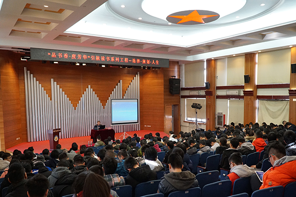 品书香一缕,悟人生杂陈,度大学芳华。1月9日,我院在民族楼407举办“品书香·度芳华”选择·规划·人生—引航读书系列工程讲座,特邀《职场头五年——你靠什么脱颖而出》一书作者空军某部参谋张涛担任主讲,院党委副书记杨向东、学工办主任徐春光、辅导员王尧葵出席,辅导员陈东锐主持,我院本科生研究生共计500余人参加。