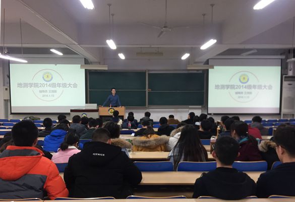 2018年1月15日下午3:30,我院在教学楼107教室举行了年级大会,2014级全体学生和辅导员王尧葵参加了会议。