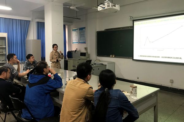 报告期间,张代洲老师详细讲解了沙尘过程中硫酸盐及硝酸盐颗粒的来源,远距离传输及其在不同地区的不同特征等内容。随后,地测学院在读博士生幸娇萍、王文华,在读硕士生李杰、常玲利等人分别就自己的所研究的内容作了简短的汇报。张老师和邵老师还就学生们的研究领域与感兴趣的问题交换了意见,并在科学思维上为同学们提出了一些很好的建议。