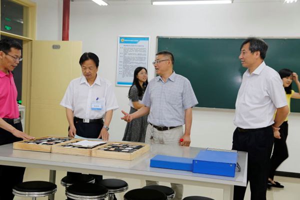 认证专家孙玉壮教授(左二)在沙河校区普通地质实验室进行考查