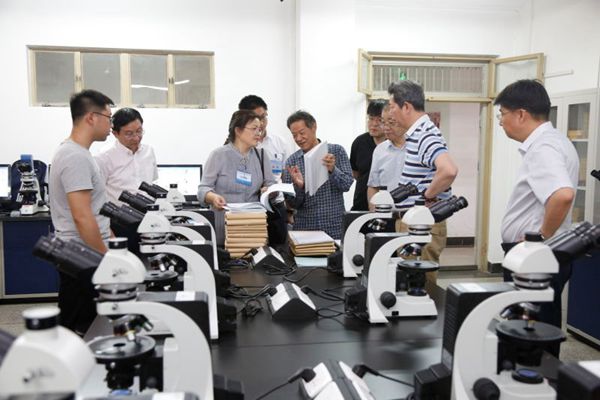 认证专家姚书振教授(左五)和张林霞研究员(左三)在学院路校区显微镜实验室考查