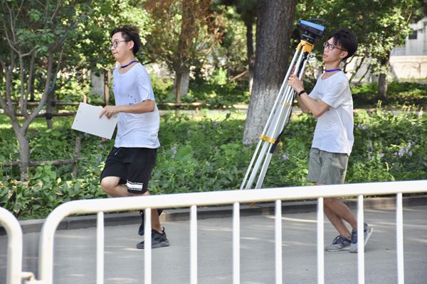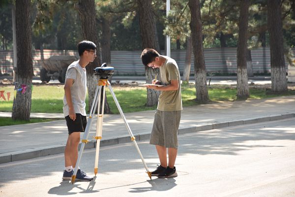 比赛前夕,指导教师现场指导,给队员们指出应该注意的细节问题,强调测量比赛如同答卷,不要大意失分,抓住得分点,发挥自己的水平。队员们认真聆听老师的指导,铭记在心。比赛过程中,在7月23号下午进行的二等水准测量和程序设计比赛,以及7月24日上午进行的数字测图比赛中,同学们团结合作、严肃紧张、细致认真,圆满地完成了比赛任务。