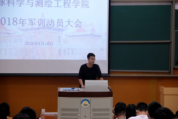 万水千山只等闲,洗尽铅华永向前。8月16日上午,我院2018年军训动员大会于沙河校区教1-329举行。大会由2017级辅导员胡媛老师和邵克俭老师主持。2018级新生辅导员王尧葵老师、信延儒老师,见习老师史浩磊及全体2017级本科生参加大会。