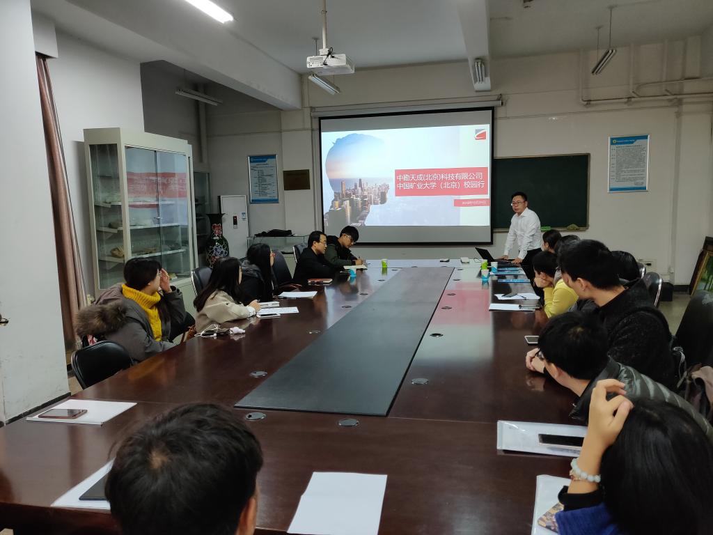 10月31日下午,中勘天成(北京)科技有限公司于综合楼249进行招聘宣讲,我院学工办主任徐春光、毕业班辅导员乔志勇、王淼淼以及2019届毕业生参加。
