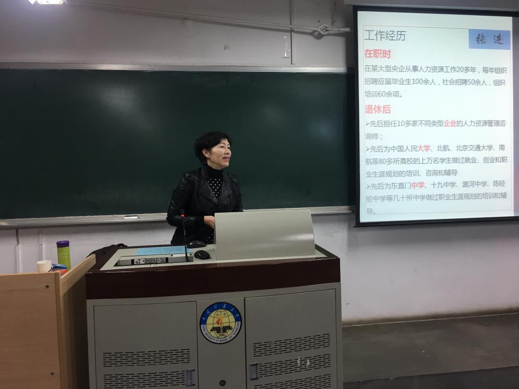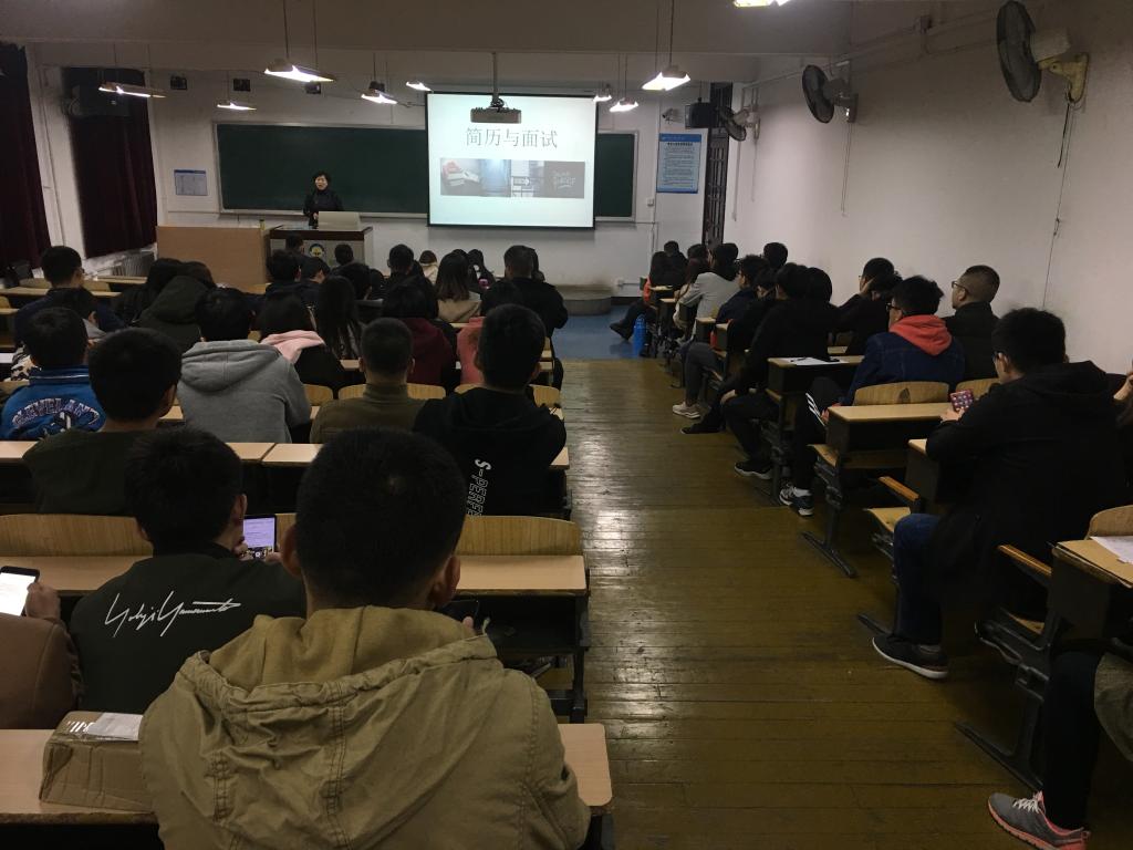 张老师结合自身丰富的经历,针对现阶段同学们的特点,通过真实案例为同学们讲解选择单位、制作简历、投递简历及面试的种种问题,并将自身多年来的经验总结为三叶草、能力三核、三点一线、人职匹配等模型。深入浅出、剥丝抽茧的讲解赢得了同学们的阵阵掌声。