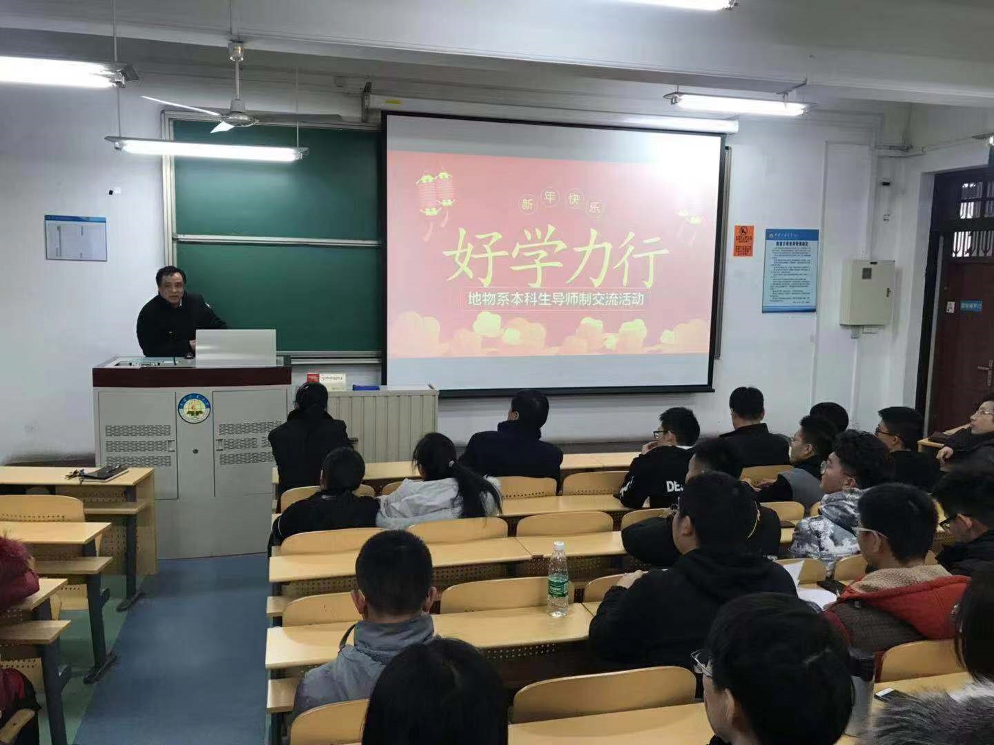 1月6号下午,地物系全体教师,四个年级的“越崎班”学生,在学院路校区民族楼234开展“好学力行—地物系本科生导师制交流活动”。本次活动目的是为了加强学生和导师的交流,并表彰15级越崎班获得北京高校“十佳示范班集体”,号召其他年级学生向15级学生学习。