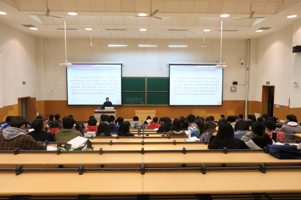 王绍清教授从资源勘查工程专业的专业沿革、专业领域与特色、就业去向、专业进展、专业就业及人才培养、专业平台、专业选择等方面进行了详细的介绍,并就当前可燃冰和干热岩两大热点问题与同学们进行了探讨。孙红福副教授从地质工程专业在国民经济发展中的作用、就业前景、课程设置、师资力量以及一些列教学科研成果等方面进行了介绍,代表地环系欢迎学生填报地质工程专业。