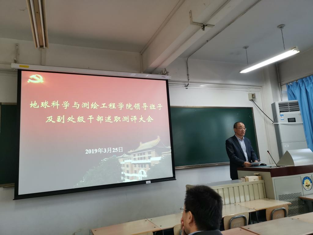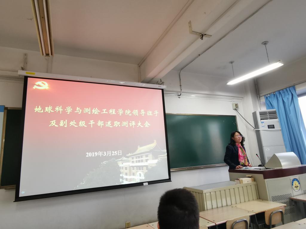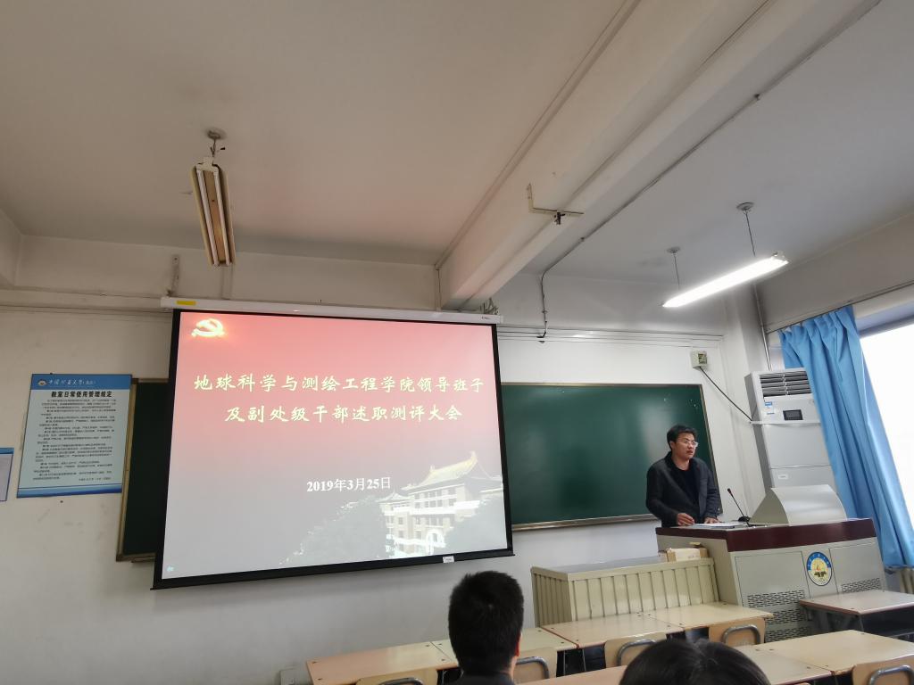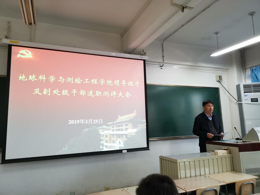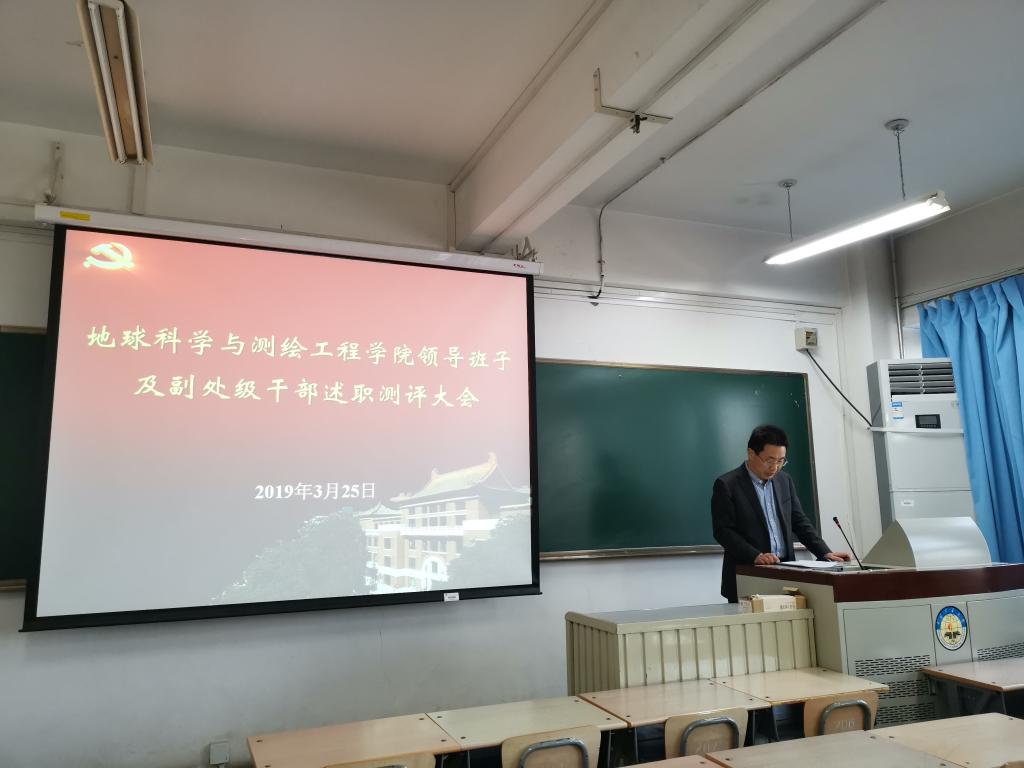 随后,学院院长代世峰从学院本科教学、研究生教学、科研管理、学科建设、师资队伍建设以及人才培养等方面代表学院班子述职,学院副院长邵龙义、程久龙、李晶、学院党委副书记杨向东分别着眼于各自分管工作,从德、能、勤、绩、廉等方面全面回顾了自任职以来开展的各项工作,总结了成绩与经验,也查摆了差距和不足。