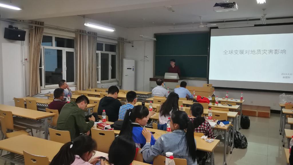 4月23日,2017级地球物理班在教2-601开展关于《地球脉动》系列纪录片的模拟观影答辩活动。活动要求同学们观看地球纪录片《地球脉动》,并发表关于影片的想法,同时邀请地球物理专业邹冠贵老师、王辉老师、卢勇旭老师以及辅导员胡媛作为此次活动的评委嘉宾,为同学们的的表现进行打分和评价。