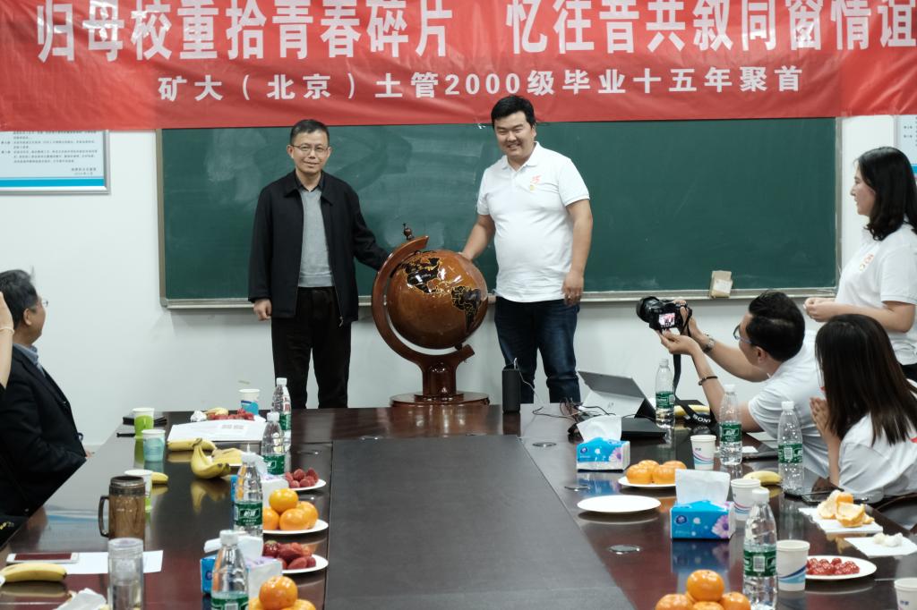 会上,学院为同学们赠送校徽,师生共同观看了《承百年学脉 育矿世英才》宣传片。校友赠送体现地测学院特色的地球仪为学校110周年校庆献礼。校友送上鲜花和祝福,与老师们热情相拥,并于民族楼前合影留念,一切又仿佛回到了那青春飞扬的岁月,正如校友会上所说:“我们永远是同学,矿大永远是咱家”。最后,校友们表示将秉持“勤奋、求实、进取、奉献”的校风,牢记母校教诲,不忘初心,努力前行,在产学研用结合、新工科建设的道路上,为母校的发展添砖加瓦、贡献力量。