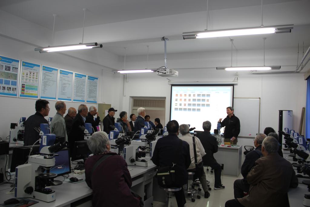 座谈会后,大家一同来到显微镜互动实验室,艾天杰老师为校友们介绍了实验室概况。看到了现代化的教学设备,校友们纷纷表示很欣慰看到学校的飞速发展,最后大家于民族楼前合影留念。