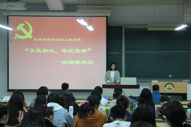 2019年10月22日,我院2017级在教210举办了“不忘初心、牢记使命”-向榜样学习为主题的年级大会暨经验交流会。院党委副书记杨向东老师,2019届优秀毕业生兰春元和2017级全体学生参加会议,会议由辅导员胡媛主持。