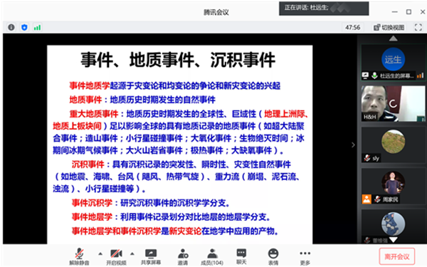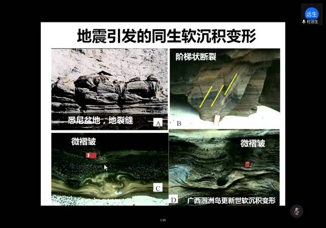 7月1日下午,中国地质大学(武汉)杜远生教授应邀在线上为地测学院师生做了题为《软沉积变形与地震事件沉积》的学术讲座。讲座由我院邵龙义教授主持,鲁静老师,方家虎老师与100余名硕士及博士研究生聆听了此次讲座。