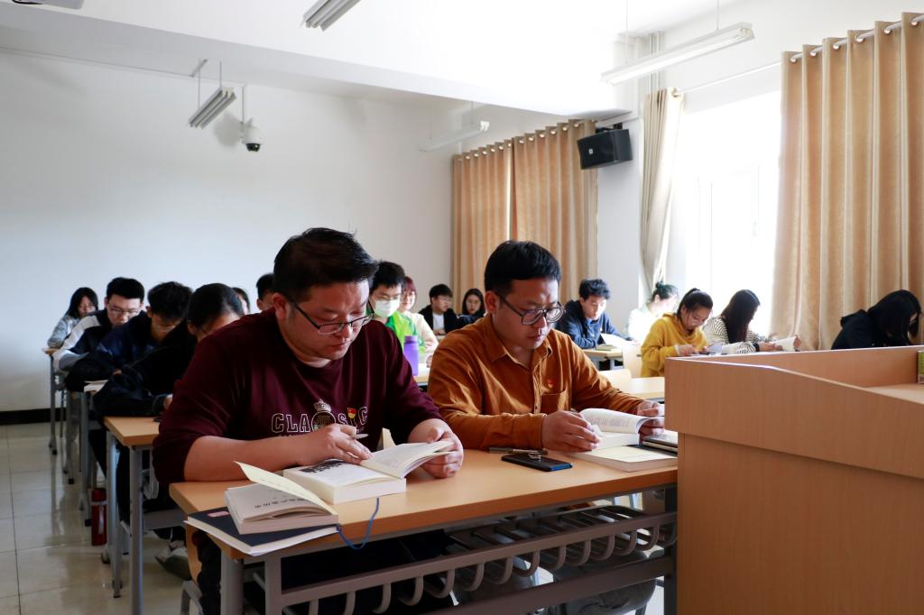 与会人员集中学习了《中国共产党简史》第一章内容,四位同学作交流发言,并根据习近平同志《论中国共产党历史》进行内容补充。