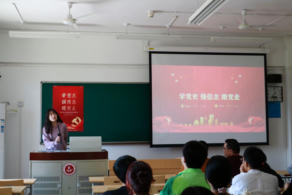 资勘2019-1班的陈韧哲同学对党史学习的重要性进行了阐述,深入介绍了第一次国共合作的背景、革命新局面的形成的原因等。王佳琪同学补充了在党史学习的过程中应该强化信念、坚定不移的跟党走。