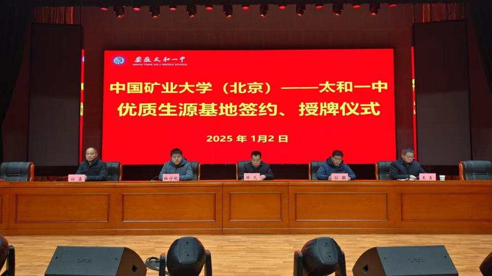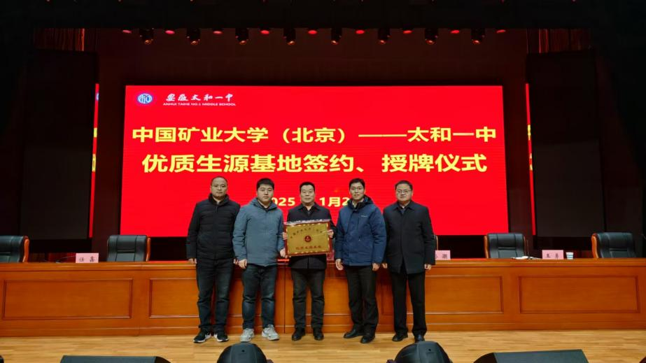 2025年1月2日上午,地球科学与测绘工程学院孙灏副教授和杜守航副教授,赴安徽省太和一中开展招生宣传工作并与高中举行“优质生源基地”签约挂牌仪式。双方代表孙灏副教授和韩光校长签署了优质生源合作协议并正式揭牌。太和一中是安徽省级示范高中、阜阳市重点中学,被清华大学、中国科学技术大学、南京大学等10多所大学授予优质生源基地。宣讲会上孙灏从“走进矿大”、“人才培养”、“国际交流”、“校园文化”,“资助体系”和“就业深造”六大方面,详细介绍了我校的办学特色、培养体系、优势学科及招生政策;杜守航从师资队伍与支撑条件、人才培养与质量保证、服务贡献与社会影响等方面,详细介绍了地球科学与测绘工程学院学科特色。太和一中校长韩光、副校长王勇、副校长任鑫以及200多名高三学子参加了宣讲仪式。此次活动为太和一中学子们提供了一次全面了解中国矿业大学(北京)的机会,双方表示将进一步加强交流与合作,共同培养优秀人才,为教育强国建设贡献力量。