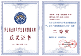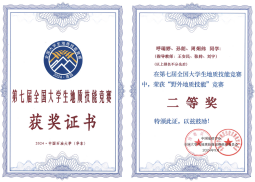 在“科技矿场”与“双导师制”的双重赋能下,资源勘查工程专业育人成果捷报频传。2024年10月,资源勘查工程专业学生团队在第七届全国大学生地质技能大赛中勇夺“野外地质技能”与“地质技能综合应用”两项二等奖(图3),本届竞赛由中国地质学会主办,吸引了全国80所高校的201支队伍参赛,规模创历史新高,竞争异常激烈。获奖团队成员表示:“神华地勘的导师在创新实践训练中指导我们掌握了地质勘查技术,这些技能直接转化为比赛中的核心竞争力。”
