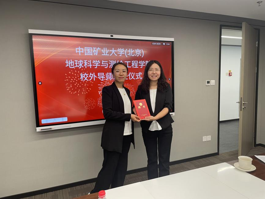 李晶介绍了我院师资队伍、学科专业建设、人才培养、科学研究和社会服务现状及校企研协同育人工作基础,对吉威空间公司在合作指导研究生和本研学生就业、创新创业等给予学院的支持和帮助表示感谢,并希望通过合作共建新平台、新课程、新项目等共同培养面向未来的测绘遥感一流人才。许志华介绍了我院测绘科学与技术学科及专业建设的发展历程、师资情况、教学科研平台、教学及科研成果等,并重点分享了教学科研特色。易俐娜老师汇报了吉威空间专业学位研究生实践基地建设情况。随后,双方就科研项目合作、学生培养和就业创业等开展了深入交流。最后,李晶为校外导师代表颁发聘书,期望充分发挥校内外双导师作用,共同培养更多的优秀专业学位硕士研究生。