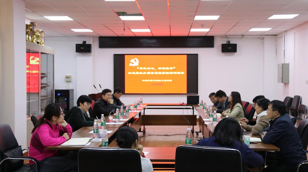 10月29日下午,在“不忘初心、牢记使命”主题教育背景下,党政办领导来地测学院进行调研指导。党政办主任谭凯等成员参加此次调研指导,调研会议在综合楼249召开。我院党委书记李晶、院长代世峰、党委副书记杨向东等参加了会议。会议由李晶主持。