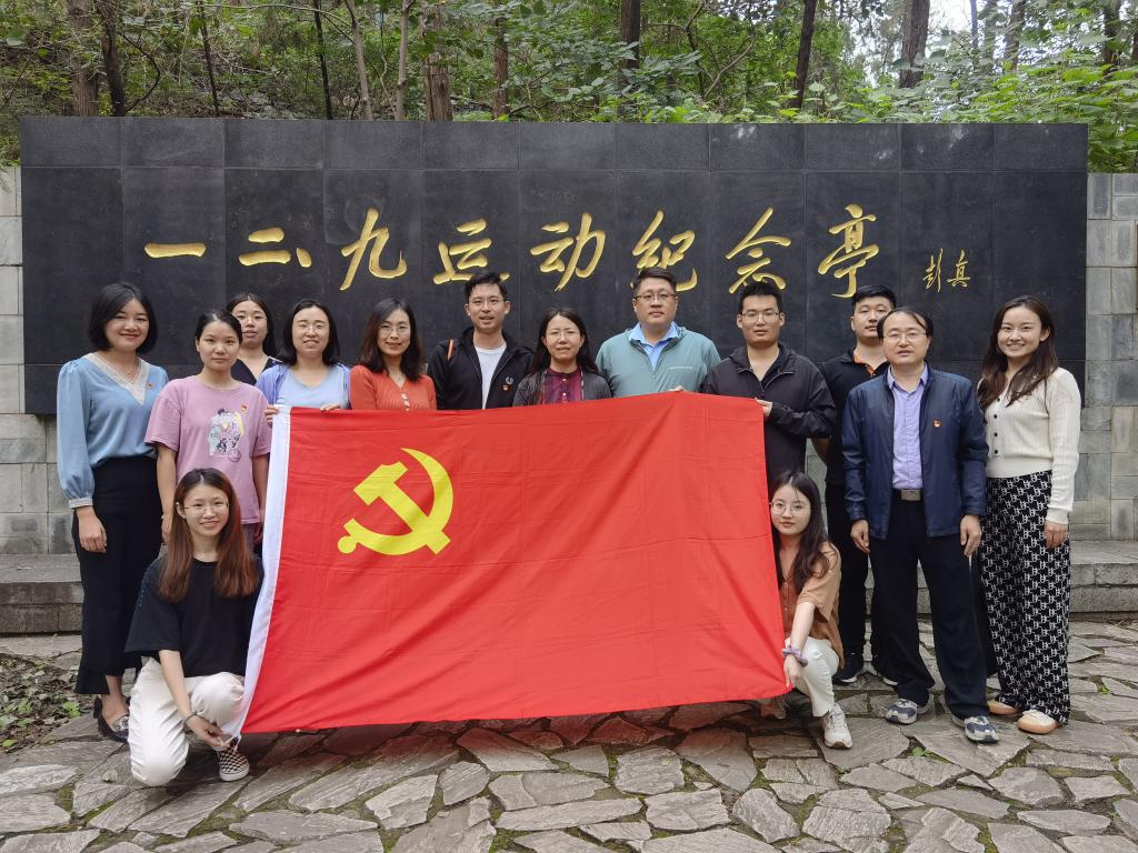 为庆祝中国共产党成立100周年,深入推进党史学习教育,提高党员的政治素养和爱国主义情操,9月28日下午,地测学院办公室党支部赴北京植物园一二·九运动纪念亭,开展以“铭记一二九,共抒爱国情”为主题的党日活动。学院党委书记李晶、党委副书记王庆多、副院长崔凡,以及院办党支部党员等十余人参加活动。