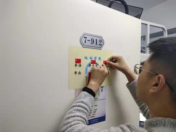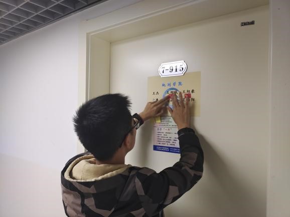 为贯彻落实全面从严治党和全面加强党员管理的要求,进一步加强学生党建工作,促进党团班共建,促进学生公寓宿舍文明建设,充分发挥大学生党员在日常学习生活中的模范带头作用,根据学院党委安排、21级硕士生辅导员陆雪松老师组织各新生党支部书记落实开展学生公寓“党旗飘飘”挂牌活动。