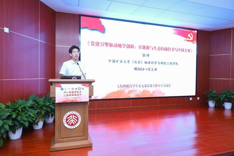 期间,中国矿业大学(北京)地球科学与测绘工程学院博24-1党支部张琦以“党建引擎驱动地学创新:在能源与生态的前沿书写中国方案”为题,分享了支部成员用地质智慧守护绿水青山的青年答卷。