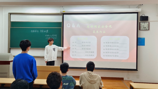 为引导支部团员青年深入学习贯彻总体国家安全观、提升国家安全意识和素养、增强维护国家安全的思想和行动自觉、坚定不移走中国特色国家安全道路,测绘23-2团支部采用“知识问答+理论学习”的形式开展此次团日活动。活动由团支部书记刘奕涵主持。