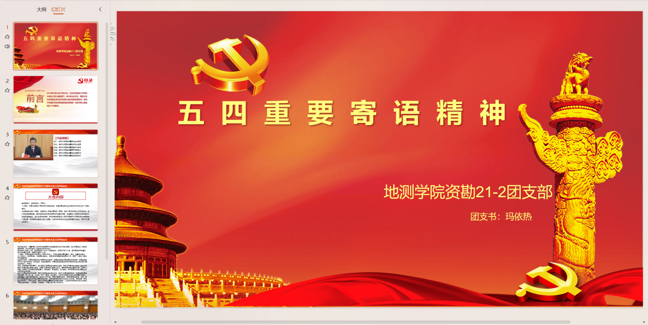 为学习贯彻习近平总书记五四重要寄语精神、学习贯彻习近平总书记关于青年工作的重要思想,引导团员青年坚定初心使命,资勘21-2团支部线上开展“五四重要寄语精神”主题团课。团员分享学习感悟,交流学习心得。