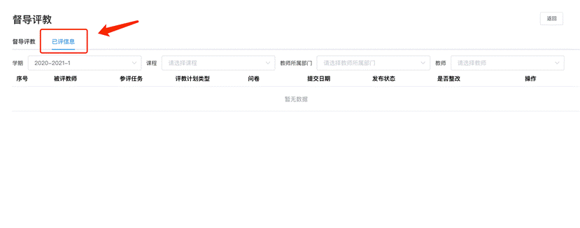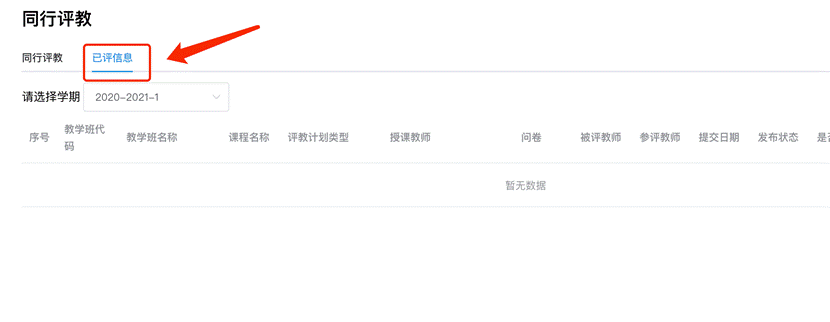 4. 提交后点击【已评信息】选项卡,可查看已经评完的信息。