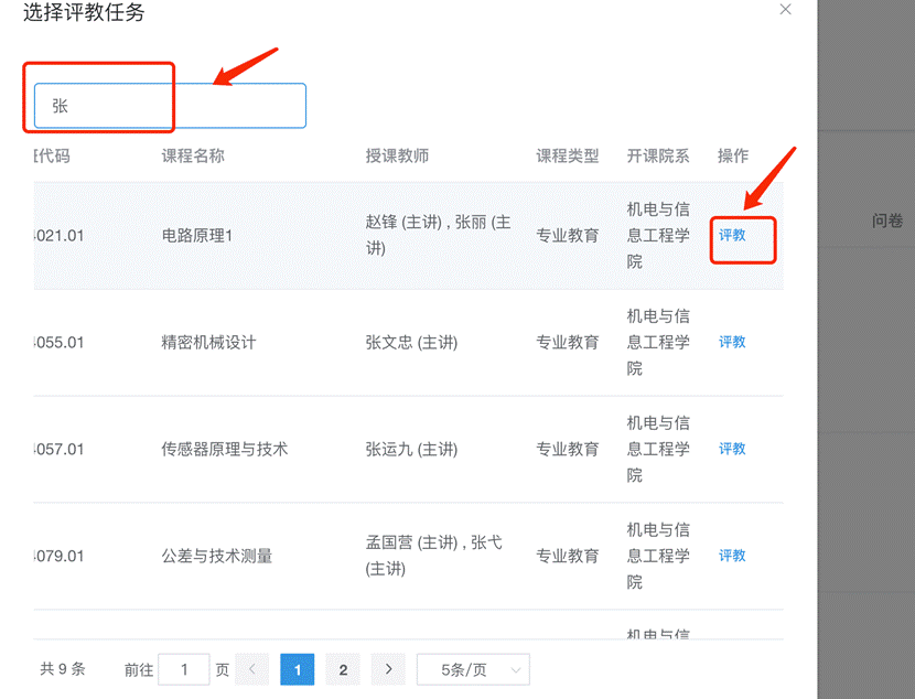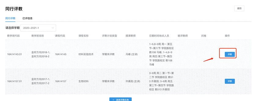 1. 点击【同行评教】进入同行评教功能页,点击需要评教的任务后的【评教】按钮。