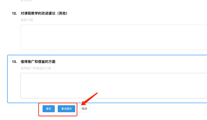 3. 问卷填写完成后,点击下方的【提交】或者【匿名提交】即可。