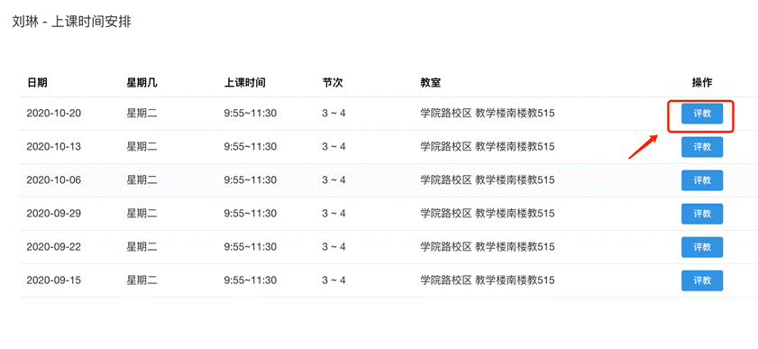 2. 点击听课节次后的【评教】按钮进入填写问卷页面
