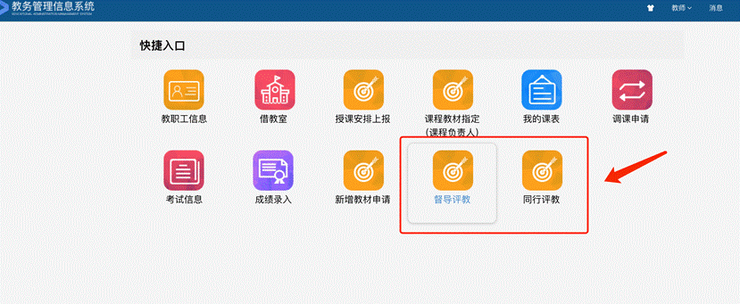 登录后进入系统首页,点击【督导评教】或者【同行评教】