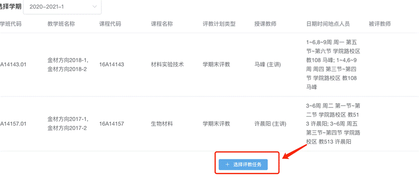 5. 非计划内评教:老师也可以选择其他教师的教学任务进行评教,点击【新增评教任务】